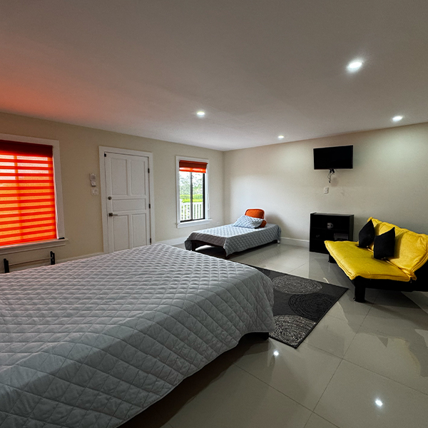 Nuestras instalaciones cuentan con un apartamento de dos pisos, en el primer nivel se encuentran las facilidades de inodoro y ducha y en el segundo nivel, una amplia habitación para el descanso de nuestros visitantes.